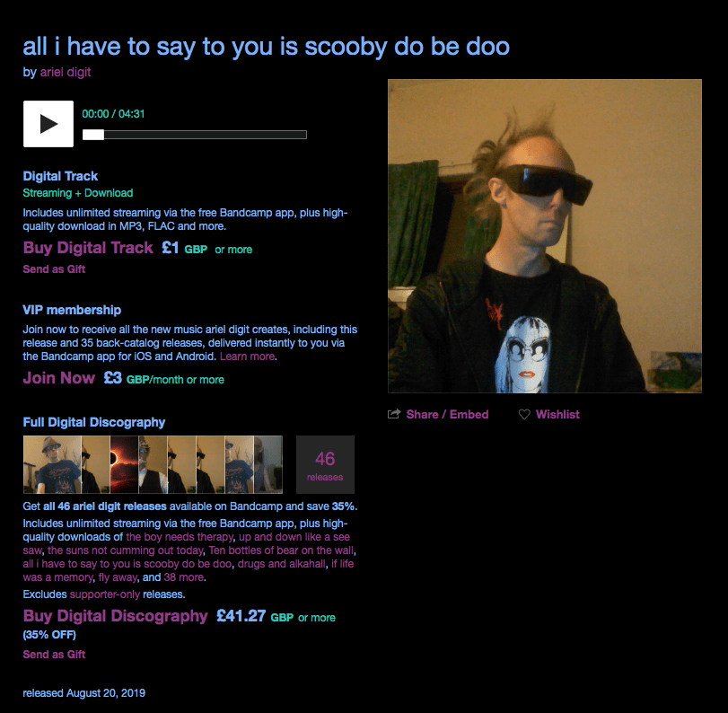 Posted on January 22, 2020 by musicrockchannelall i have to say to you is scooby do be doo by Ariel Digit ⭐⭐⭐⭐⭐ Rating: 5 out of 5. Share this: Click to share on X (Opens in new window) X Click to share on Facebook (Opens in new window) Facebook Like Loading...