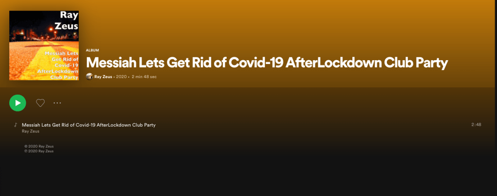 My First composition was the song “Republic of Ireland, Felt Free Like a Bird” which has very huge response from the people Living in Ireland as the song captivates touristy places such as “Cliffs of Mohr, Dublin Castle”. My second song has 2 versions “Messiah, Lets Get Rid of Covid-19 AfterLockdown Club Party” and the other version “Lets Get Rid of Covid-19, Messiah”. This song reflects Messiah which I intend to dedicate to medical staff around the world who are doing a great job around the world. The main lines “I want to be a Messiah, Protect people from Disaster, All I want Save the People” was dedicated to Doctors around the world in times of need during the Covid-19 crisis. I am working on my next newly written songs “Love of my Life” which is dedicated to people losing someone in their lives and my speciality song “Be my Love, The Sunshine Song” which is dedicated to couple and lovers around the World. So Stay Tuned, Follow Ray Zeus and I can hope to finish the Album “The Truthful Messiah”.