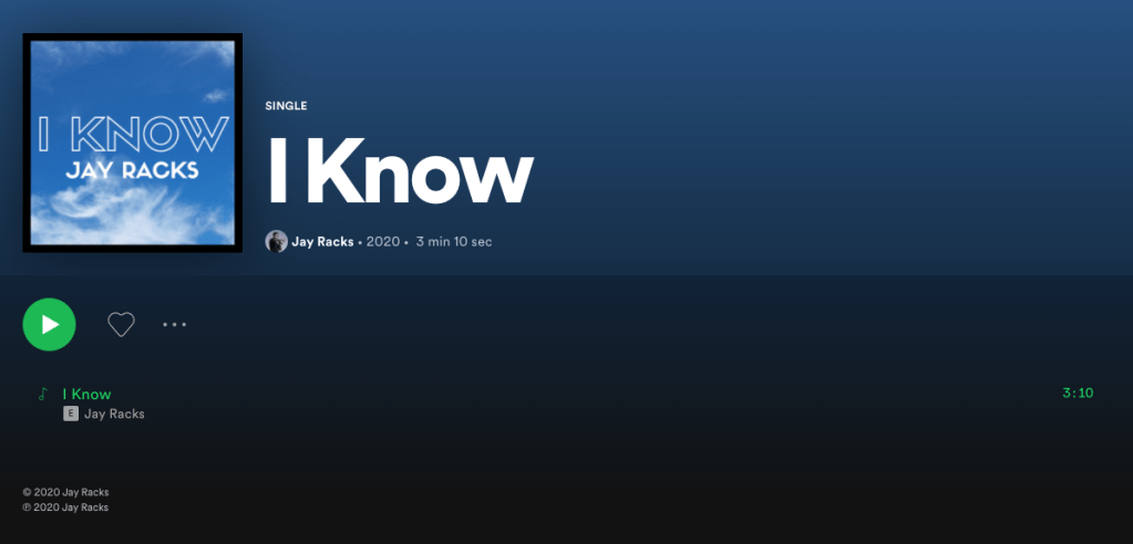 Posted on August 14, 2020 by musicrockchannelI Know by Jay Racks ⭐⭐⭐⭐⭐ Rating: 5 out of 5. Share this: Click to share on X (Opens in new window) X Click to share on Facebook (Opens in new window) Facebook Like Loading...